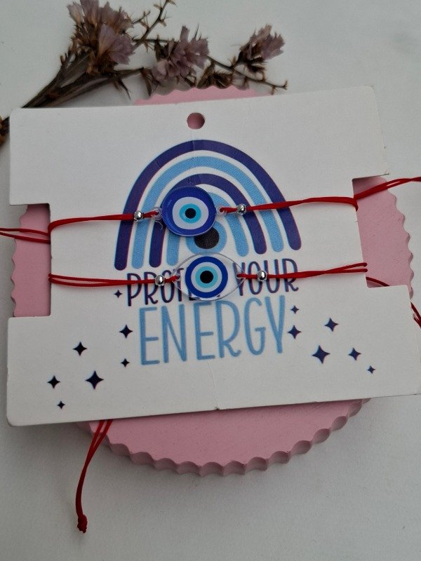 Set de dos pulseras para compartir de hilo con dijes de plástico.